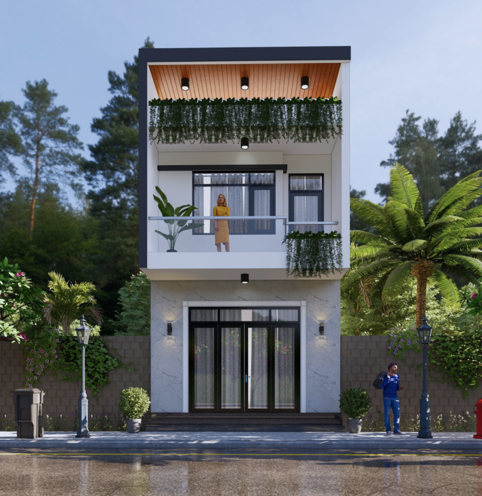 Theo yêu cầu của Cô Vũ Thị Mến và gia đình cũng ít người nên không có nhu cầu xây nhà nhiều tầng. Như vậy vừa lãng phí mà cũng không thuận tiện cho việc cô chú đi lại sinh hoạt trong nhà. Vì vậy KTS đã thiết kế nhà phố 1 trệt 1 lầu để đáp ứng theo đúng yêu cầu của gia chủ.