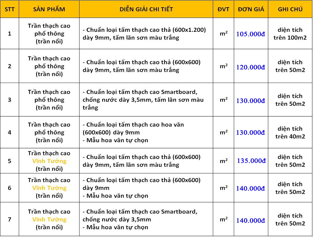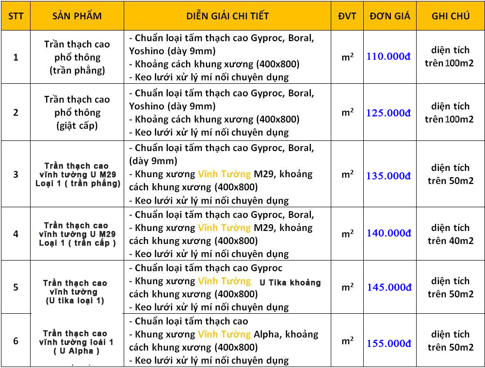 => Chuyên nhận thi công trần nhà thạch cao các loại trên địa bàn các quận tại tp HCM và Bình Dương. Đồng hành trên mọi hạng mục quý khách đưa ra.